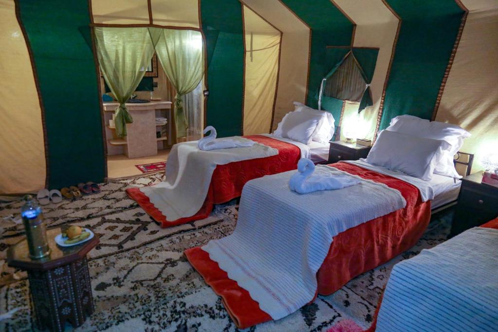 Accommodation: Sahara Desert Luxury Camp or equivalent tent. Please note that resources such as water and electricity are limited, but charging light devices is still possible.